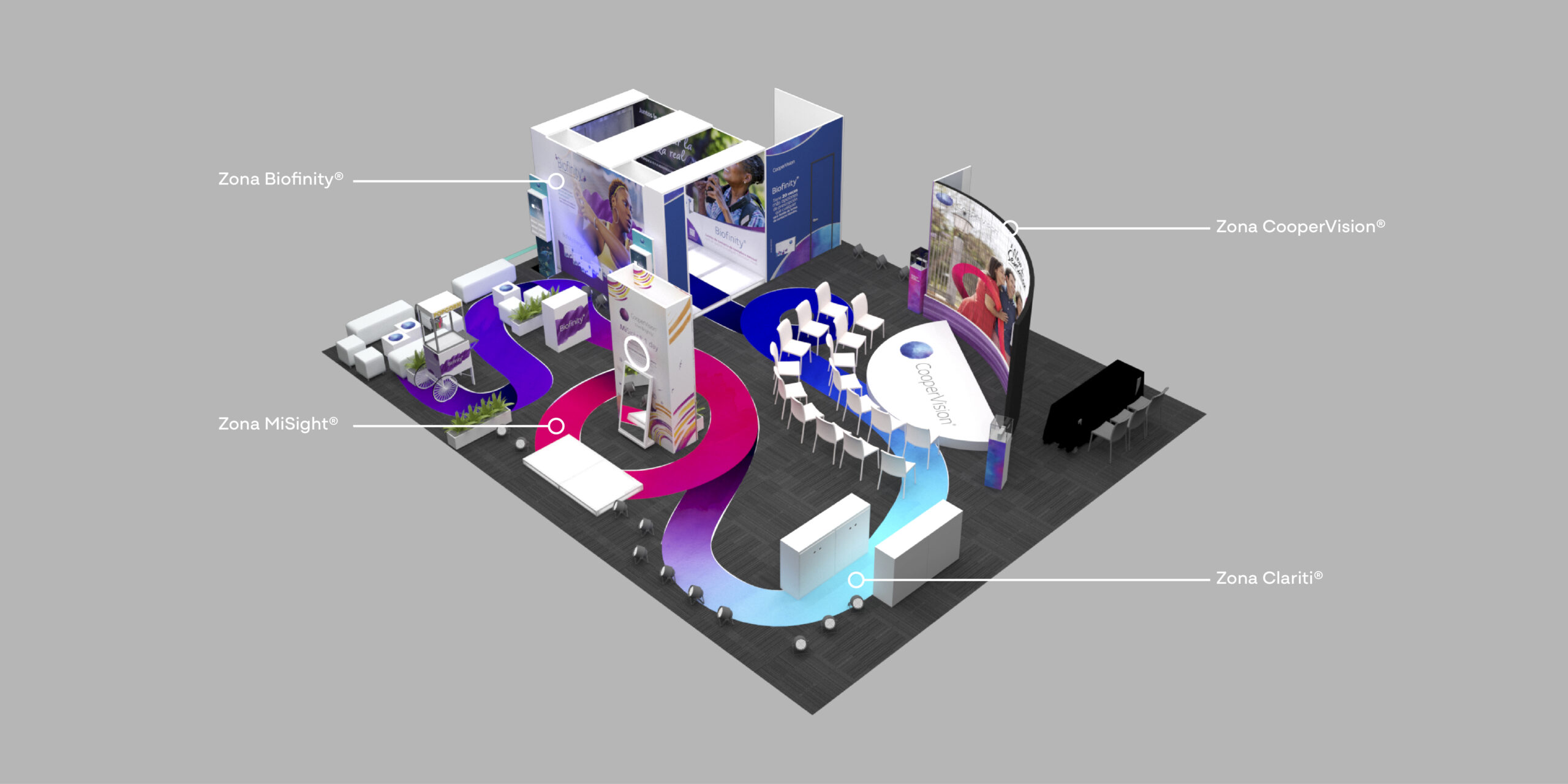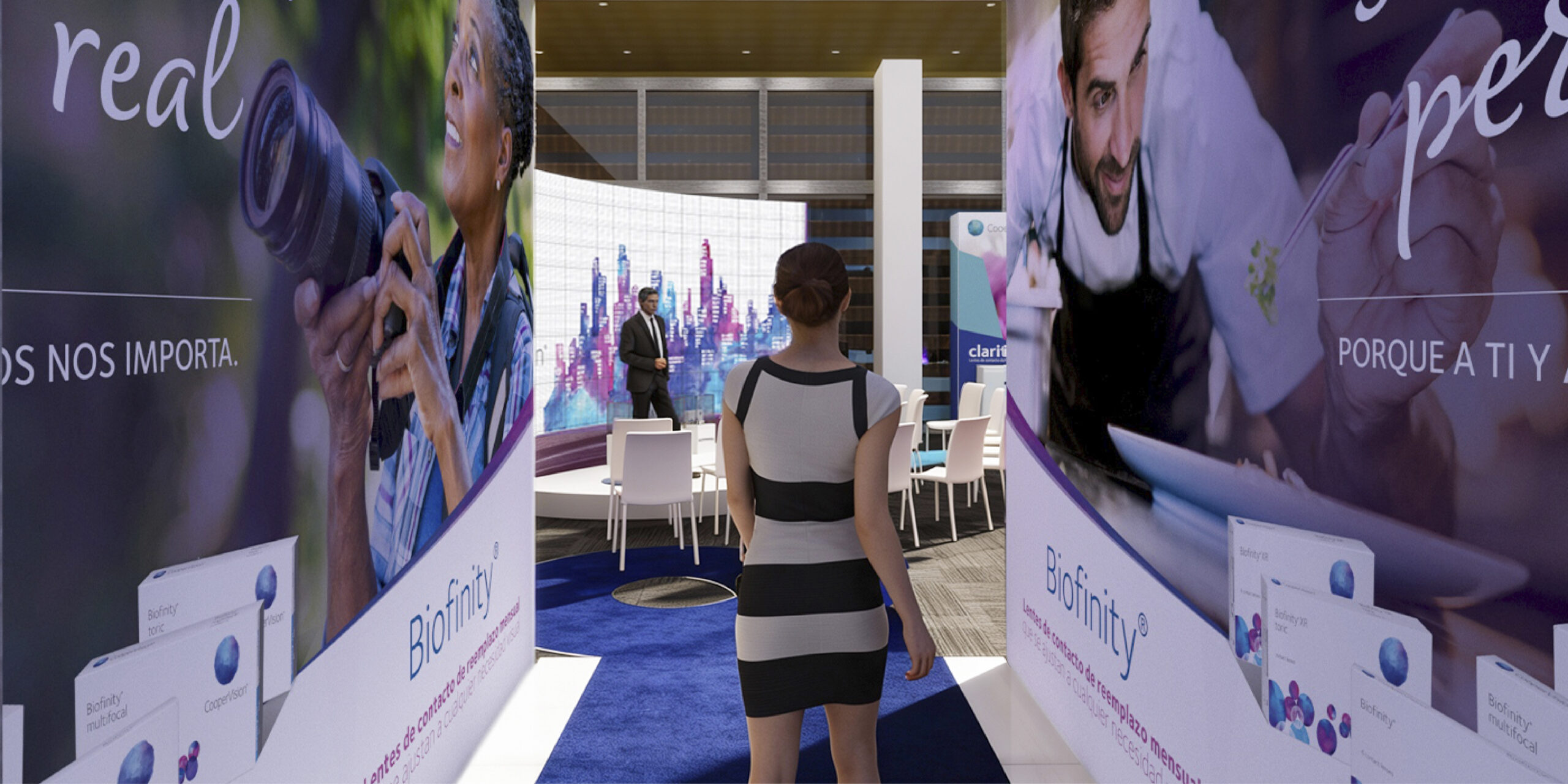 Transformamos el espacio en un destino. A través de charlas y la presencia de un host reconocido, Marcelo Cezán, añadimos color, creamos experiencias inmersivas y desarrollamos souvenirs. El entretenimiento y la experimentación quedaron garantizados, logrando que los especialistas no solo visitaran el espacio, sino que quisieran quedarse en él. CooperVision brilló por encima de la cotidianidad corporativa, demostrando que ver bien y mejor puede ser vibrante.
