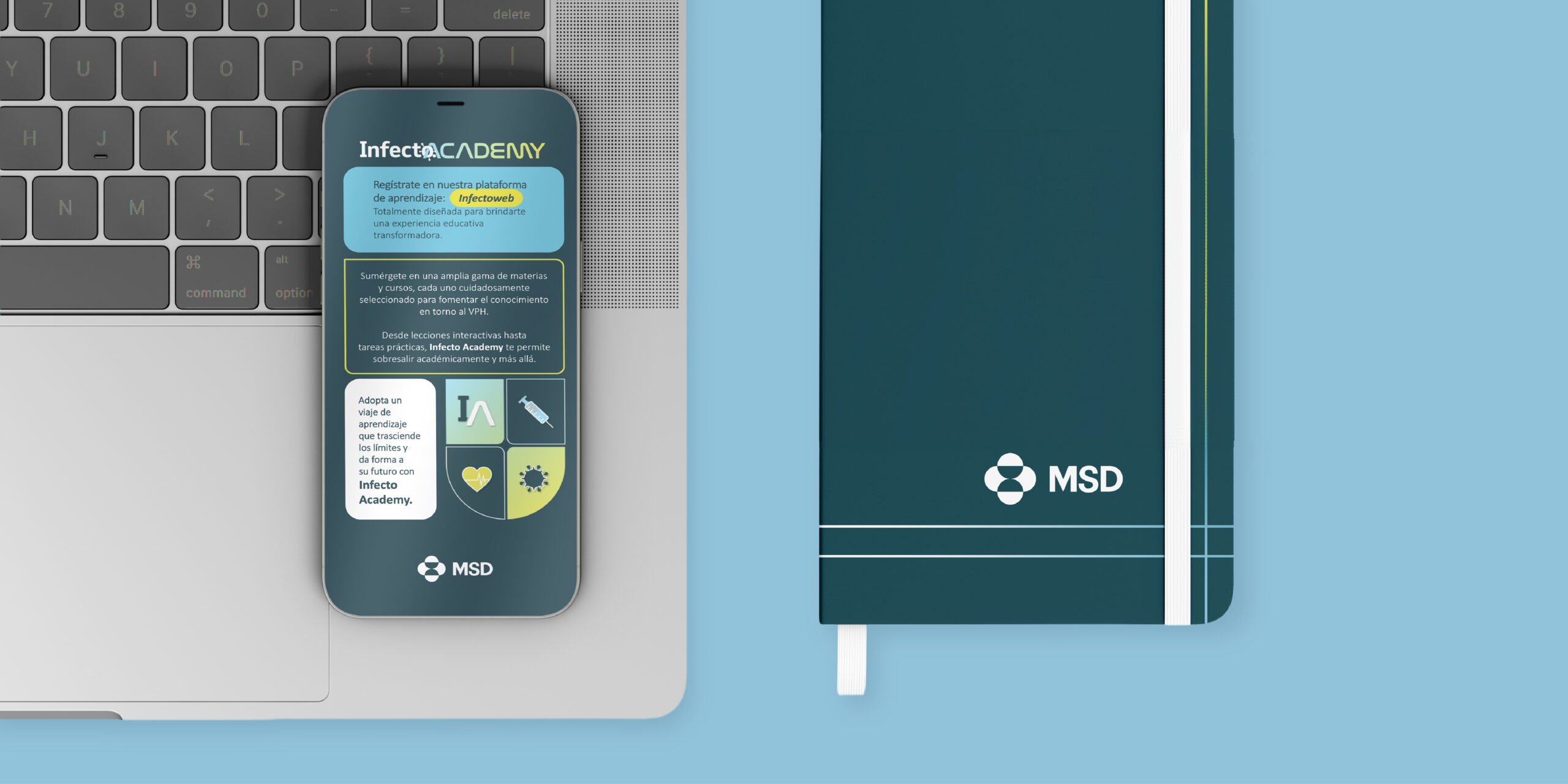 Ciencia, medicina, 150 especialistas, Maloka y un branding que activaba el impulso de no parar de aprender, fueron los ingredientes que mezclamos para revivir la mística universitaria en un campus interactivo. Adaptamos los espacios para que el rigor científico sobre la prevención del VPH se viviera con un enfoque dinámico, uniendo a los asistentes bajo el gran propósito de crecer. Códigos de vestimenta, clases magistrales, actividades extracurriculares, un pensum, toga y birrete, todo fluyó con la premisa de una inmersión absoluta. Así fue como logramos graduar a la primera generación de Infecto ACADEMY.